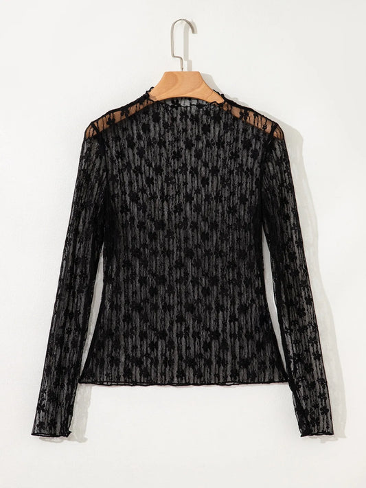 Lace See-Through Long Sleeve Blouse